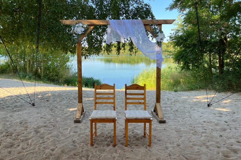 Traubogen und Willkommensschild