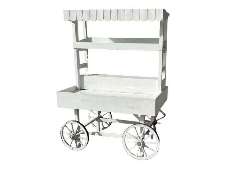 - Bestehend aus zwei separaten Teilen, die auch unabhängig voneinander genutzt werden können (Wagen mit Ablagefläche & Aufsatz mit Dach)
